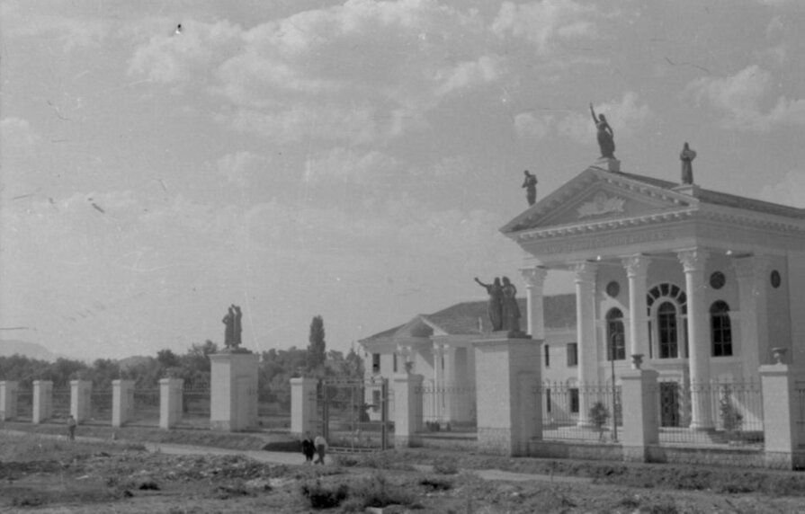 The Kinostudio main building is recognised as a protected cultural monument of Albania. Designed by a group of Soviet architects and built by Albanian craftsmen, it represents a rare and well-preserved instance of neoclassical architecture interpreted through socialist-realist principles.